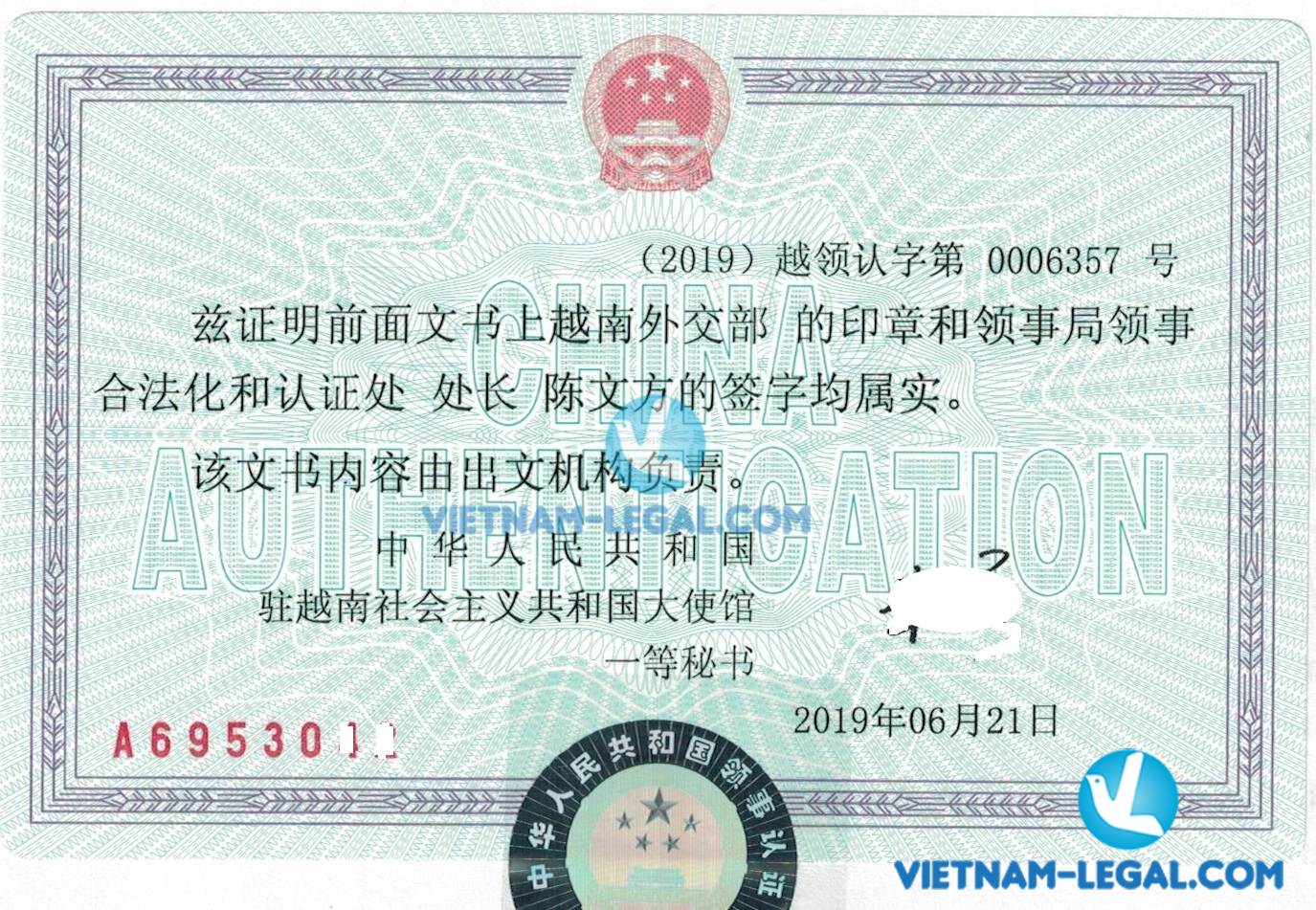 Legalization Result of Vietnamese Document for use in China Vietnam